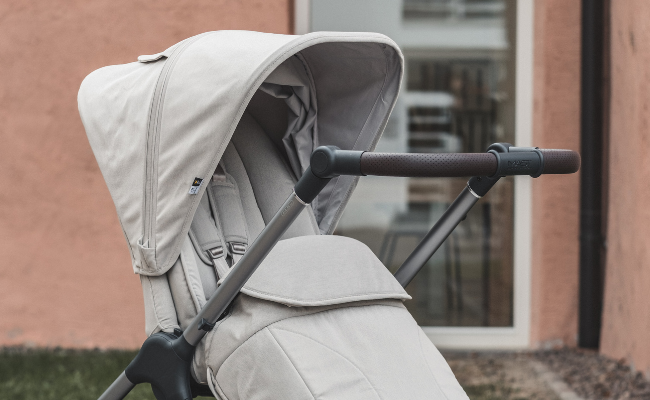 Ručka na kolicima M.5x izrađena je od visokokvalitetne ekološki prihvatljive kože i može se podesiti u četiri različita visinska položaja.