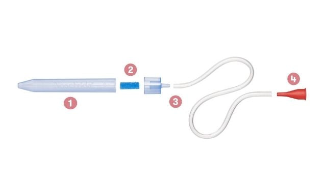 Pomoću crvenog nastavka na usniku izvucite nosnu sluz drugom rukom.