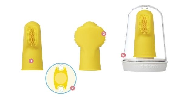 - ENOSTAVNO ČIŠČENJE: S ščetko drsite vzdolž linije dlesni, s čimer boste hkrati čistili in masirali in s tem otroku pomagali pri lajšanju težav z zobmi.
